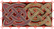 14. Not bad, but probably should have stuck with the original non-doubled style grid. :-) In addition, the Celtic scribes appeared to have used a variable width grid pattern and/or a pattern variance (the third repeat from the left does not have the same grid pattern as the other three). These are not unusual occurrences in the original materials. Below is a slightly modified version of the generated design that includes the pattern variance. Closer yet... |